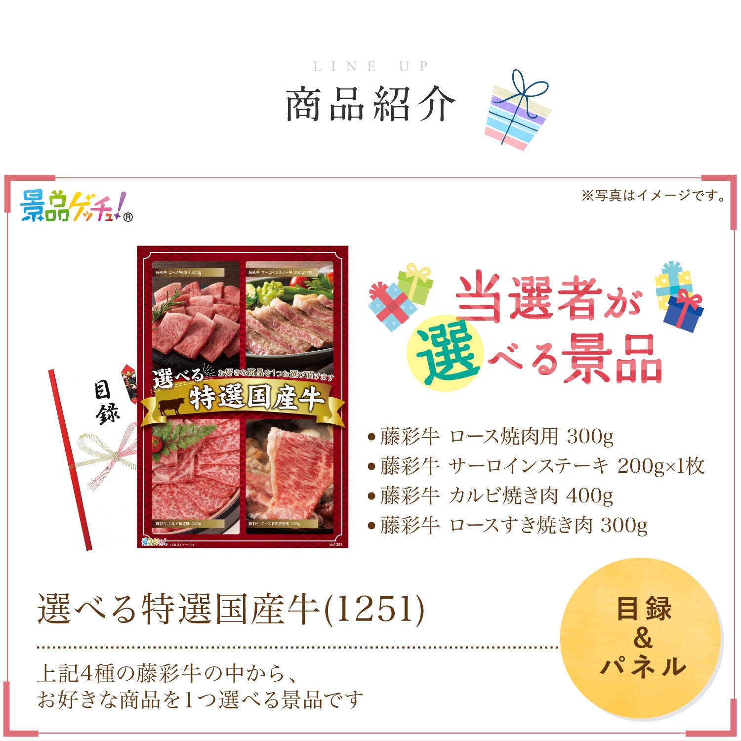 ご当選された方へ景品発表のパネルと目録(引き換えハガキ付)をお渡しください。