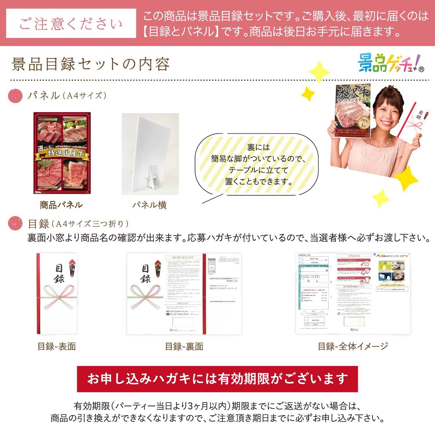 ご当選された商品について記載された目録で、商品引き換えのハガキがついています。