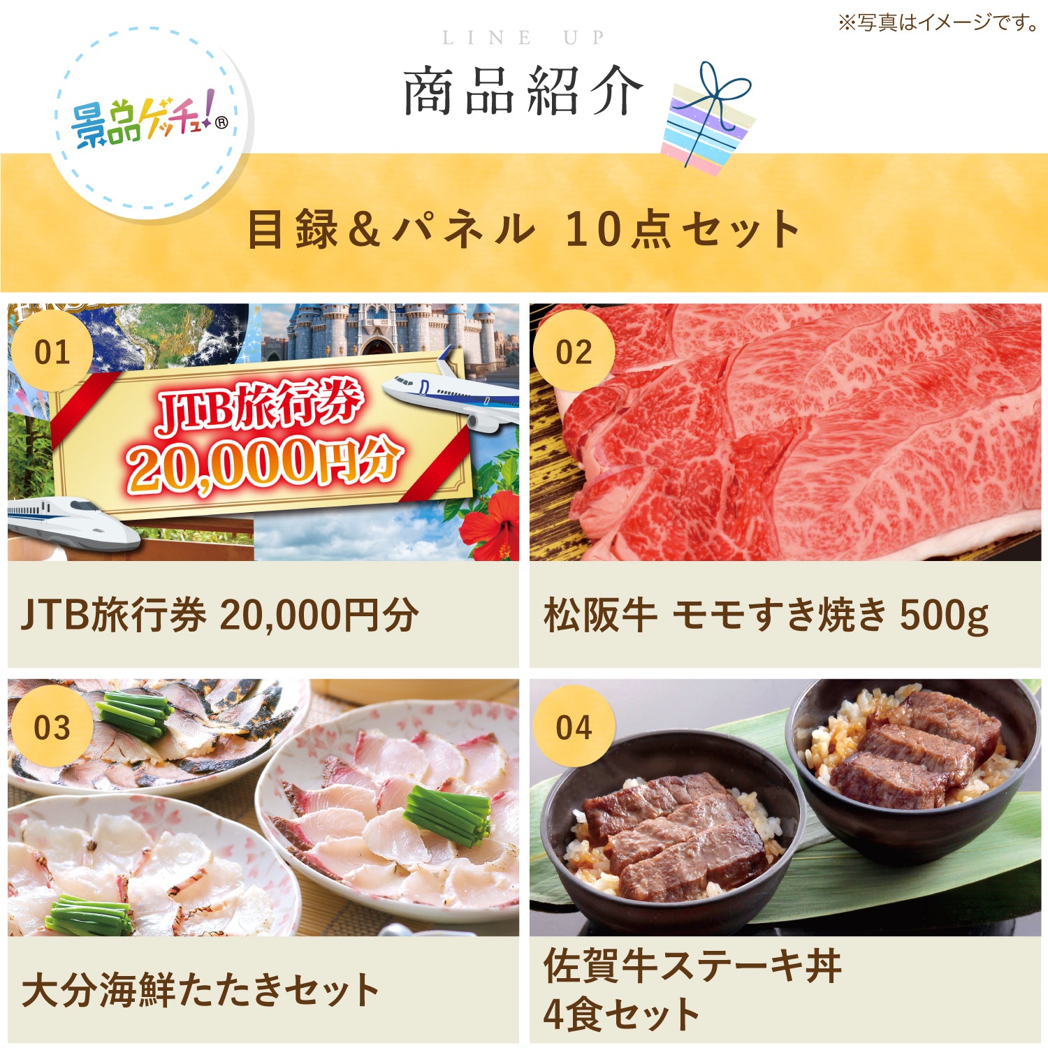 景品 10点 セット (テーマパークチケット 旅行券/松阪牛/ 海鮮 / ハンバーグ 等 )