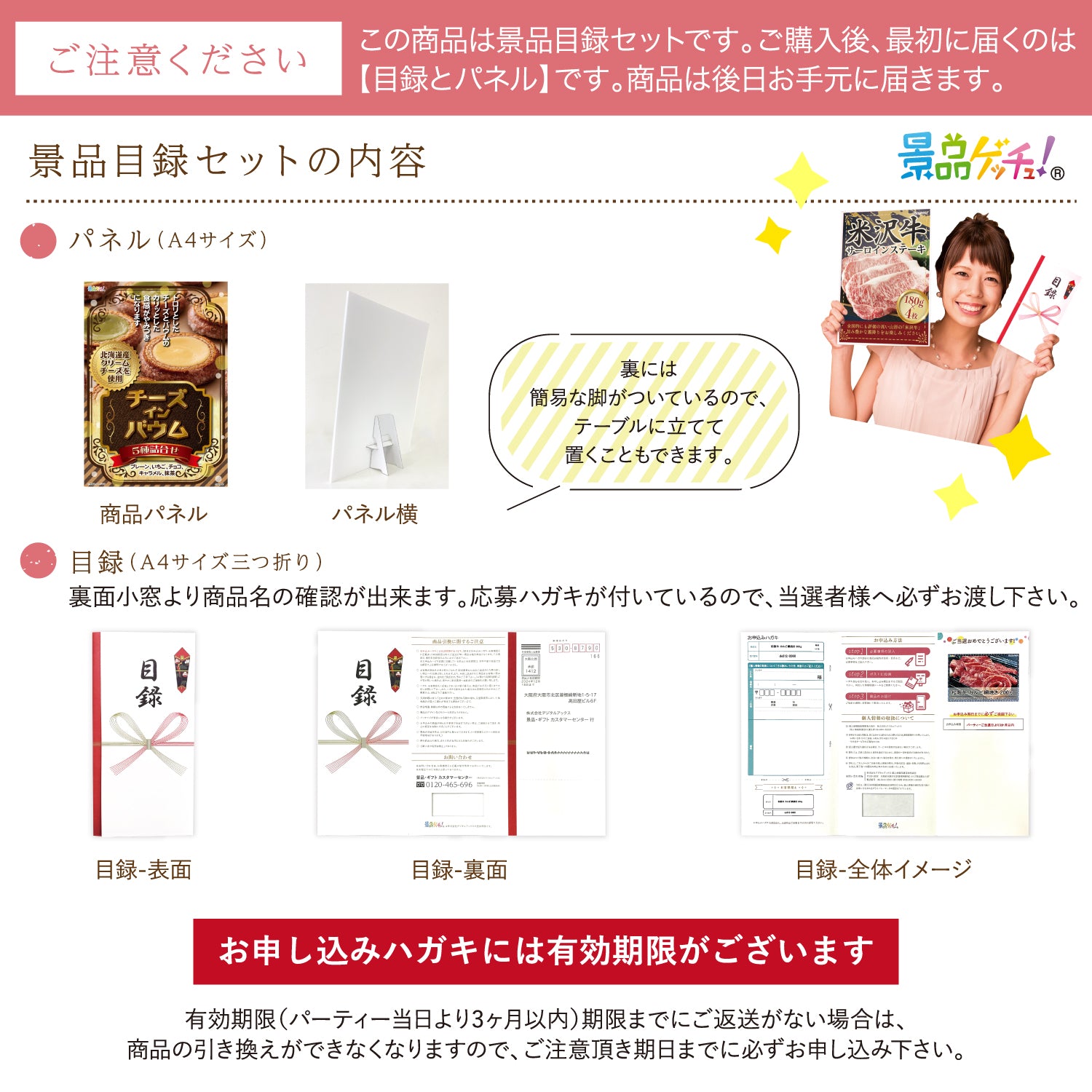ご当選された商品について記載された目録で、商品引き換えのハガキがついています。