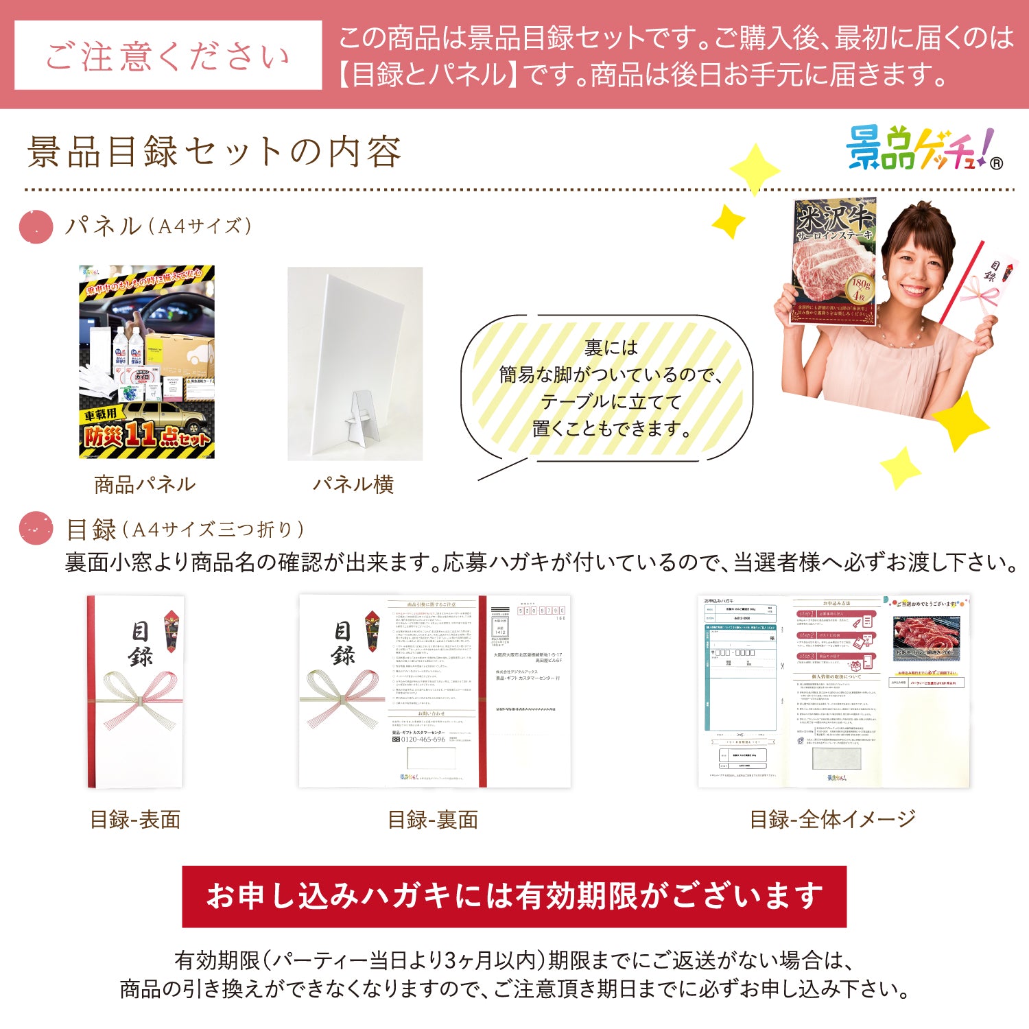 ご当選された商品について記載された目録で、商品引き換えのハガキがついています。